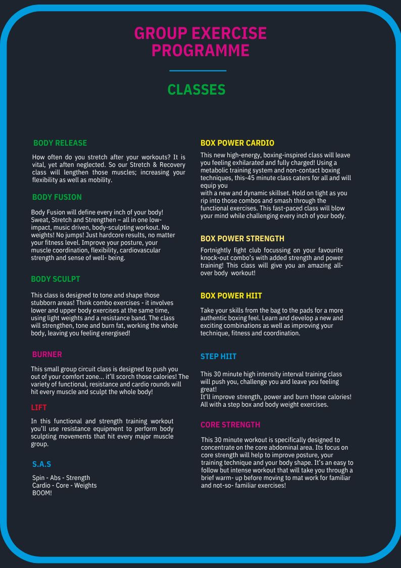 Boxing. Strength. HIIT. Sculpt. Recover. Spin. LIFT. Cardio. Tone. Power.